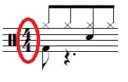 Le rythme est noté en début de portée comme dans l’exemple ci-dessous en 4/4 :
